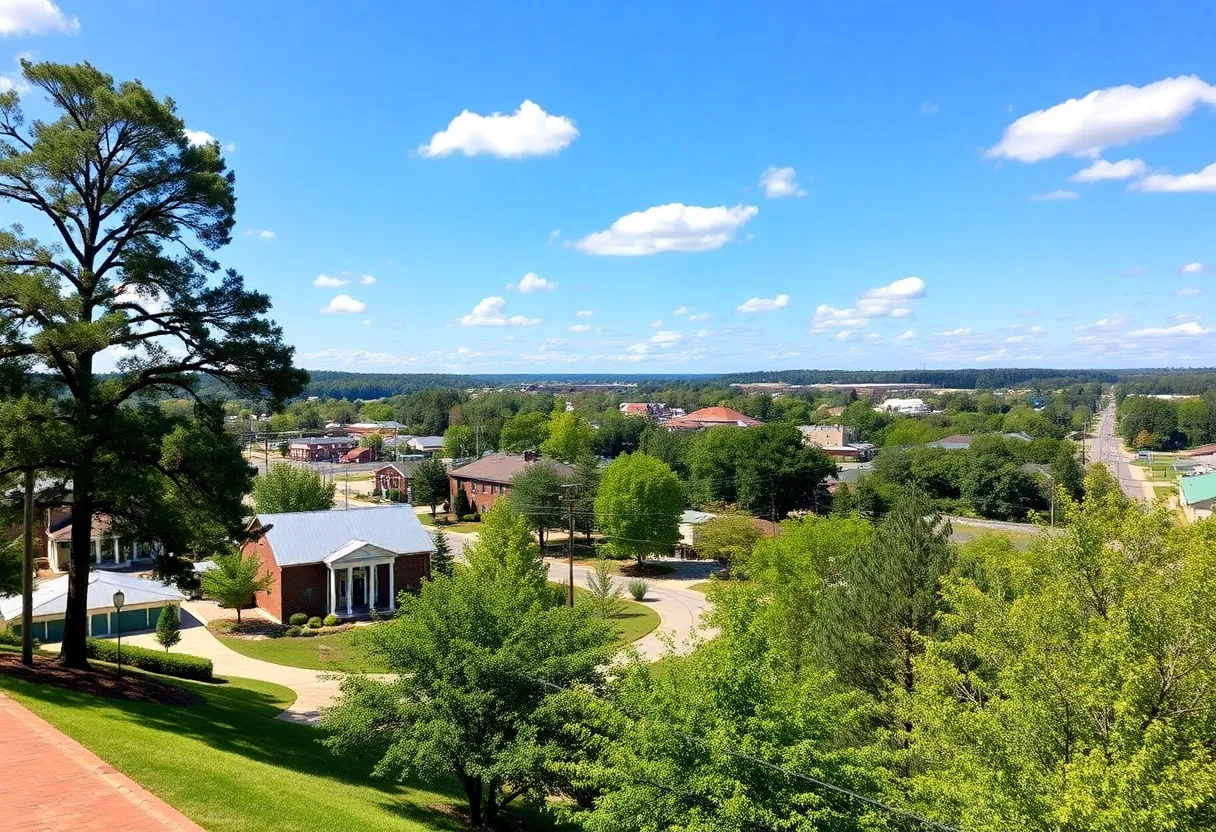 A vibrant landscape of Greenwood, South Carolina with green areas